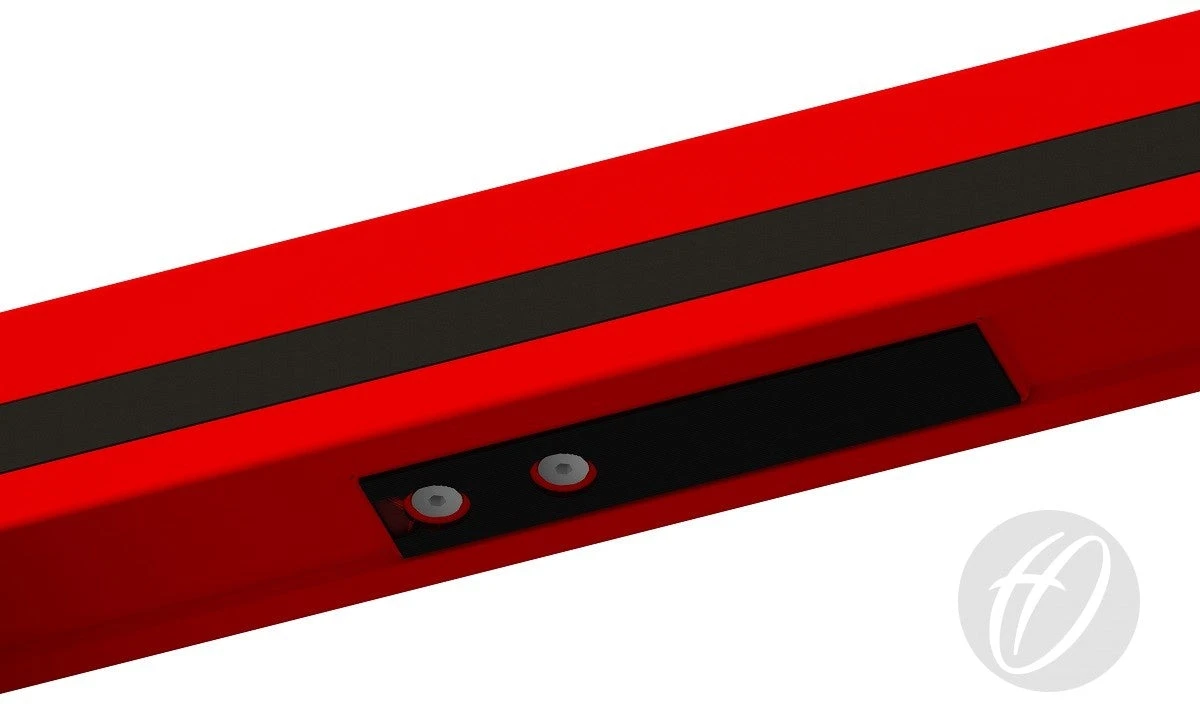 - Polyester powder coated red.