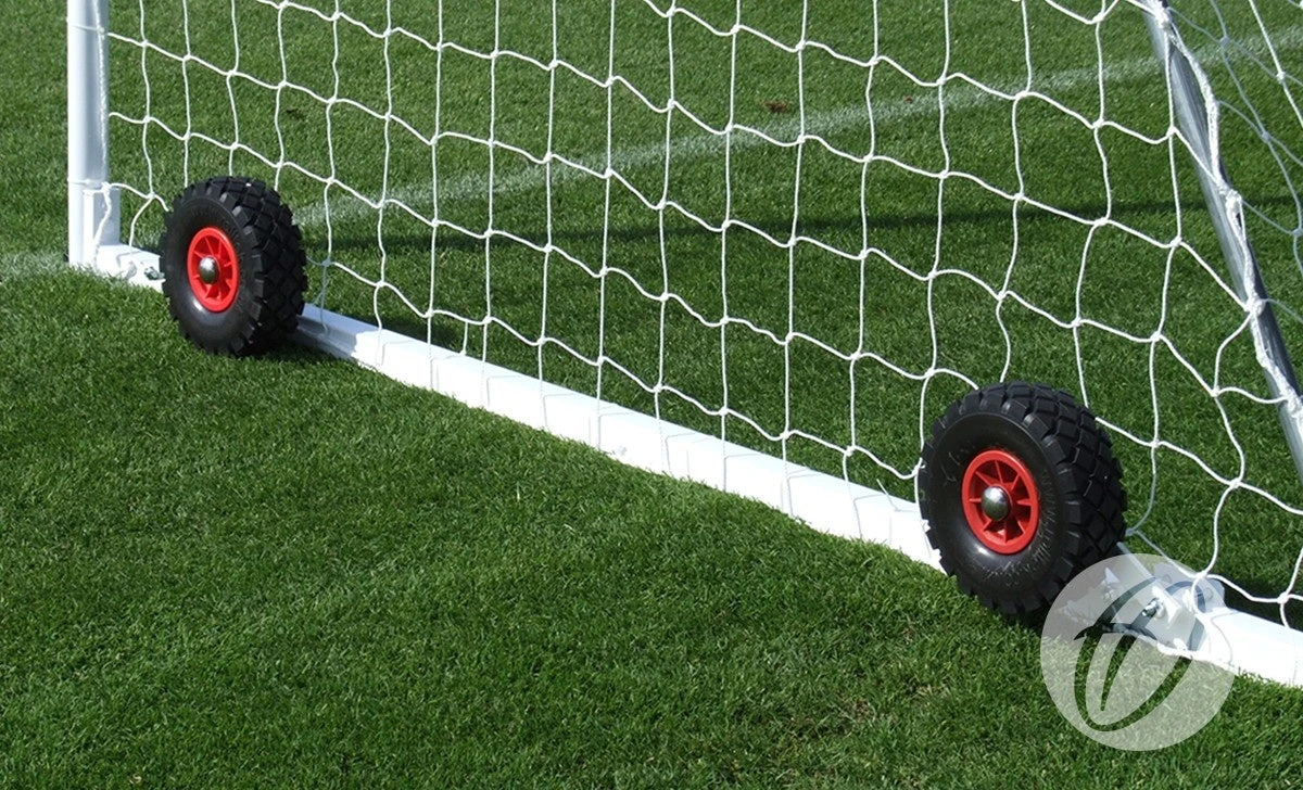 Flip-over wheels for freestanding steel goals.