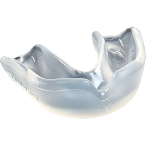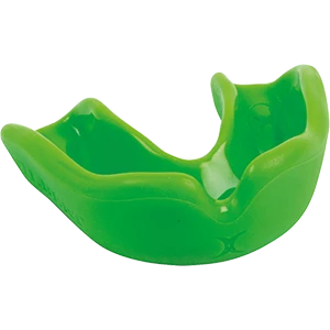 Superior enrty-level mouthguard with pre-contoured shield. The extra wall thickness minimises trauma to the jaw and skull.