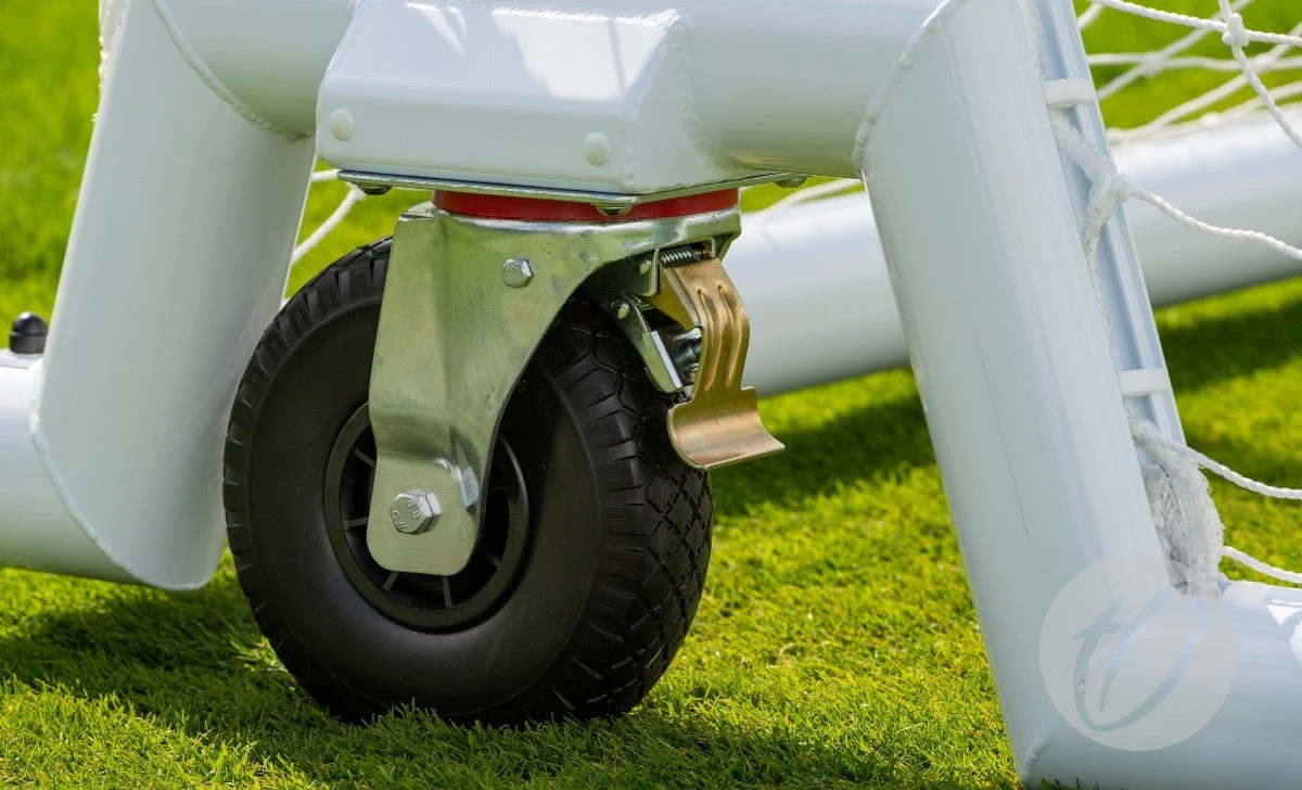 - The wheels are large 260mm diameter cellular swivel wheels for easy manoeuvrability on natural grass or artificial turf pitches.