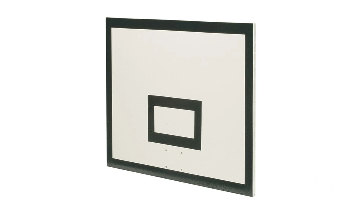 White 18mm moisture resistant bonded wooden backboards drilled to take Harrod UK basketball rings.