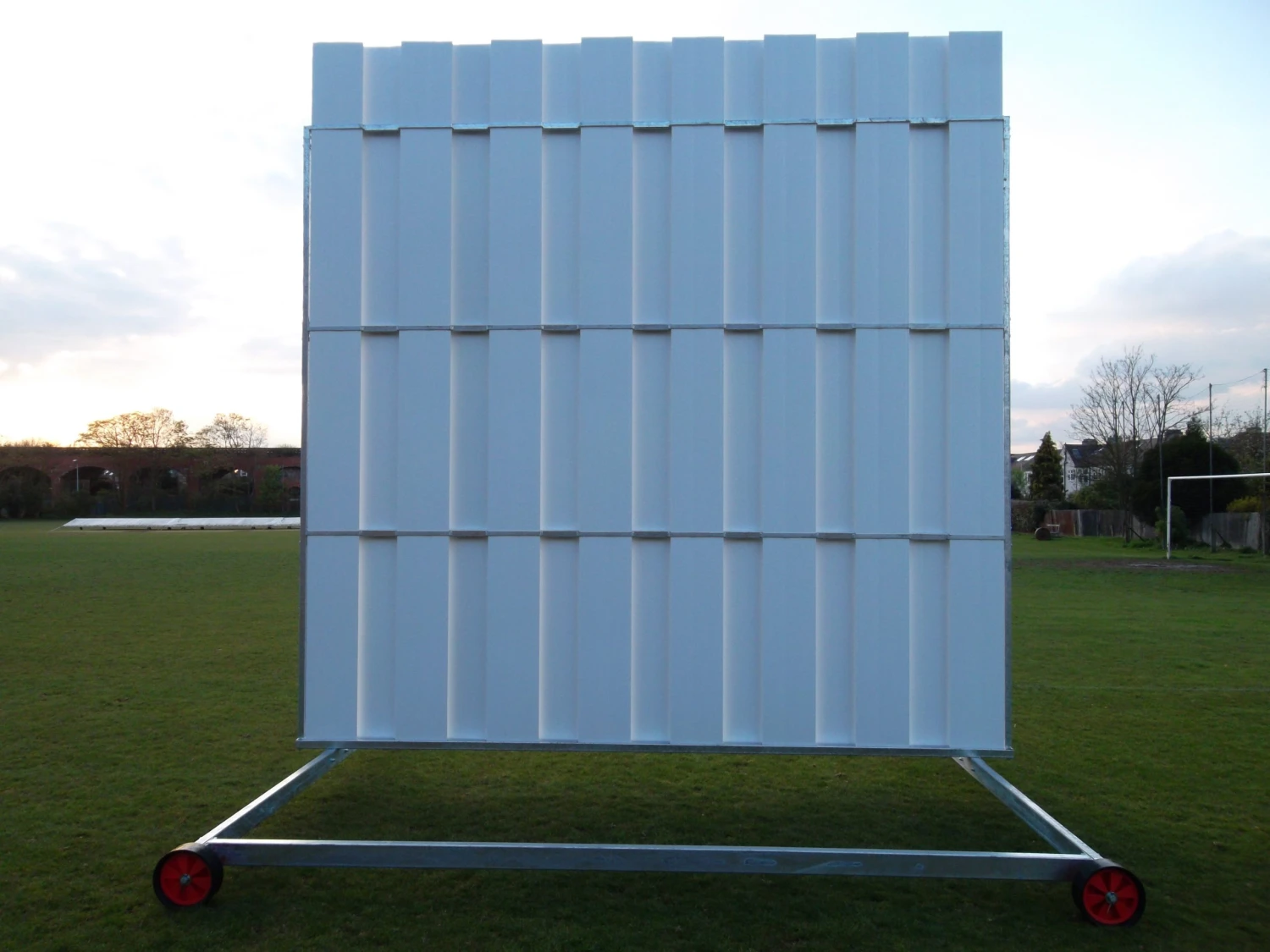 Our sightscreens are designed to be lightweight and easily manoeuvrable. We therefore suggest you remove some of the boards if windy weather is likely. If you have a windy site we can supply stabilising pegs to help you secure your sight screens.